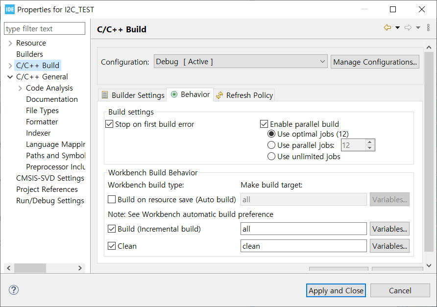 Properties --> C/C++ Build --> Behavior 탭 --> Enable parallel build 체크