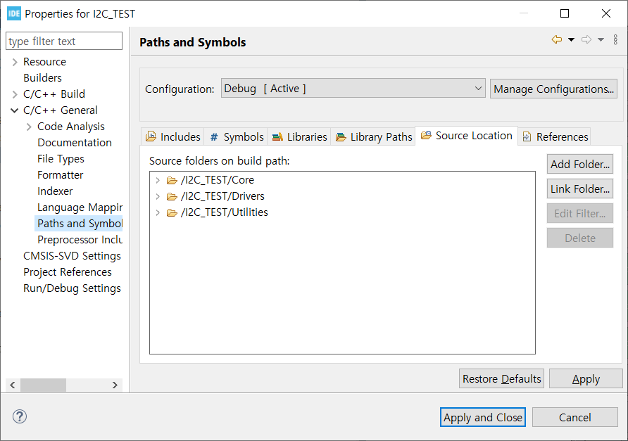 Properties -> C/C++ General --> Paths and Symbols --> Source Location